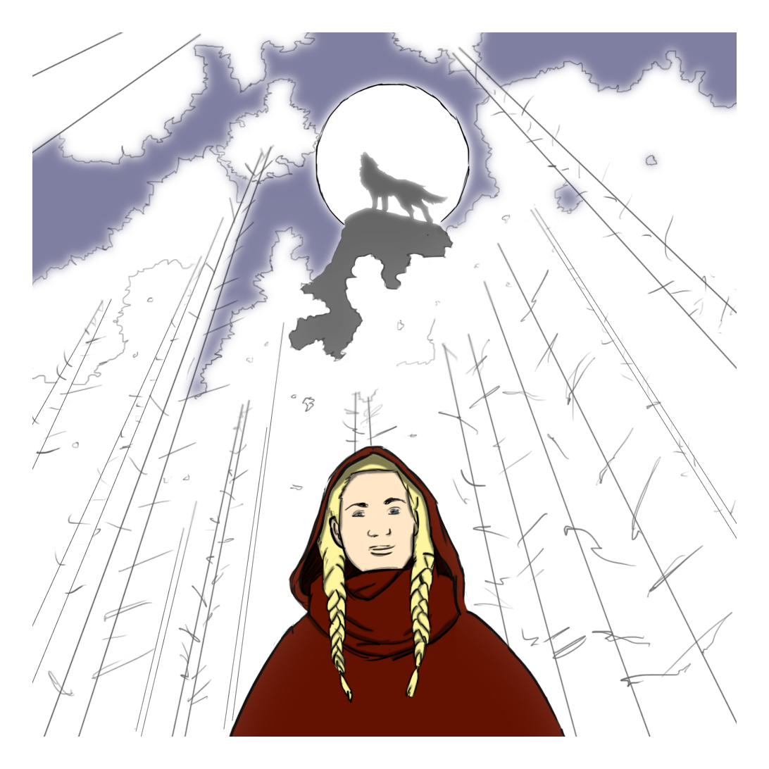 Cuando ya estaba en el bosque, se encontró con el lobo, quien le preguntó hacia dónde iba. Caperucita le contestó que a casa de su abuelita, que estaba enferma, a llevarle una merienda; y le dijo todo lo que llevaba en la cesta.